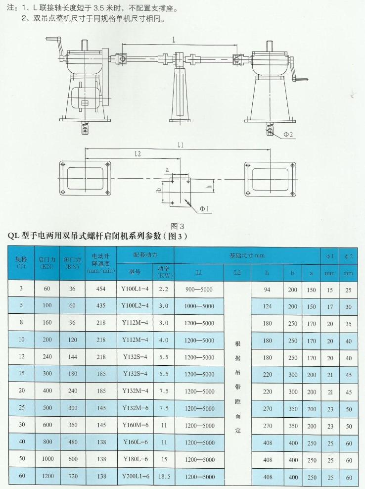 QL型手電兩用雙吊螺桿啟閉機系列參數(shù)